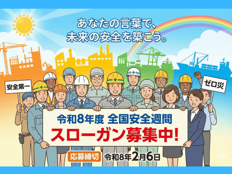 続きを読む全国安全週間は昭和3年の開始以来、一度も途切れることなく続けられ、令和8年度でいよいよ99回目を迎えます。あなたの考案したスローガンが、全国の作業現場を彩り、仲間の安全を守る合言葉になるかもしれません …