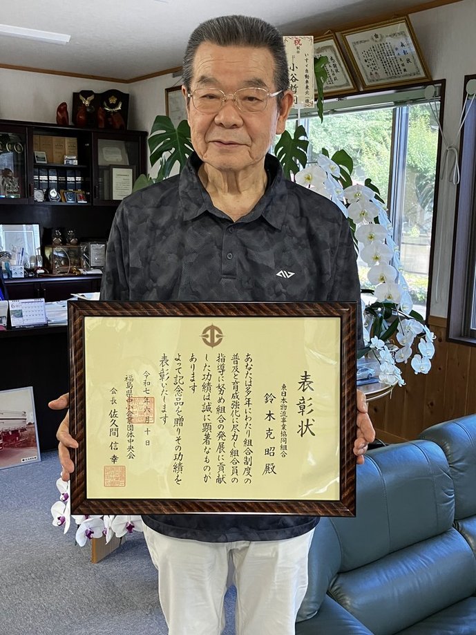 この度、当組合前理事長の鈴木克昭氏が、福島県中小企業団体中央会より組合功労者表彰を受彰されました。