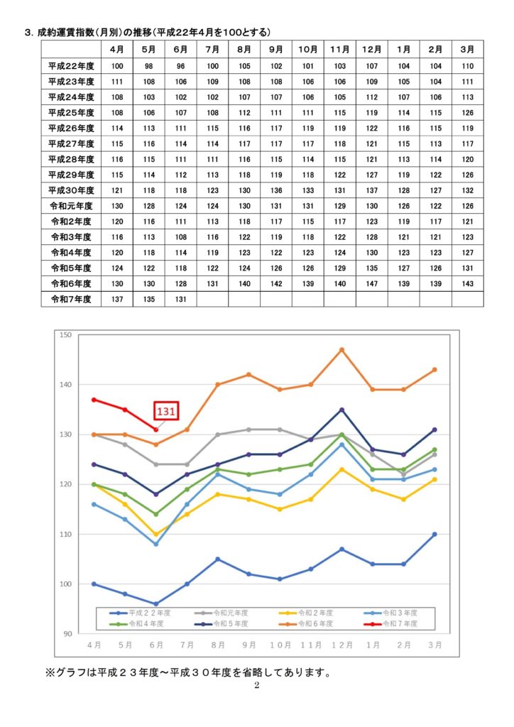 日本貨物運送協同組合連合会と全日本トラック協会がまとめた、7月分の求荷求車情報ネットワーク(WebKIT)成約運賃指数(速報値)は135と、対前月比で4ポイント上昇、対前年同月比で4ポイント上昇しました。また、7月の荷物情報登録件数は124,336件と、前年同月の142,926に比べて13%減少しました。