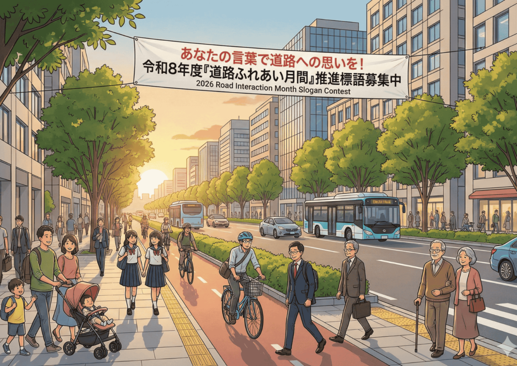 国土交通省より、令和8年度「道路ふれあい月間」(毎年8月)に向けた推進標語の募集が開始されました。