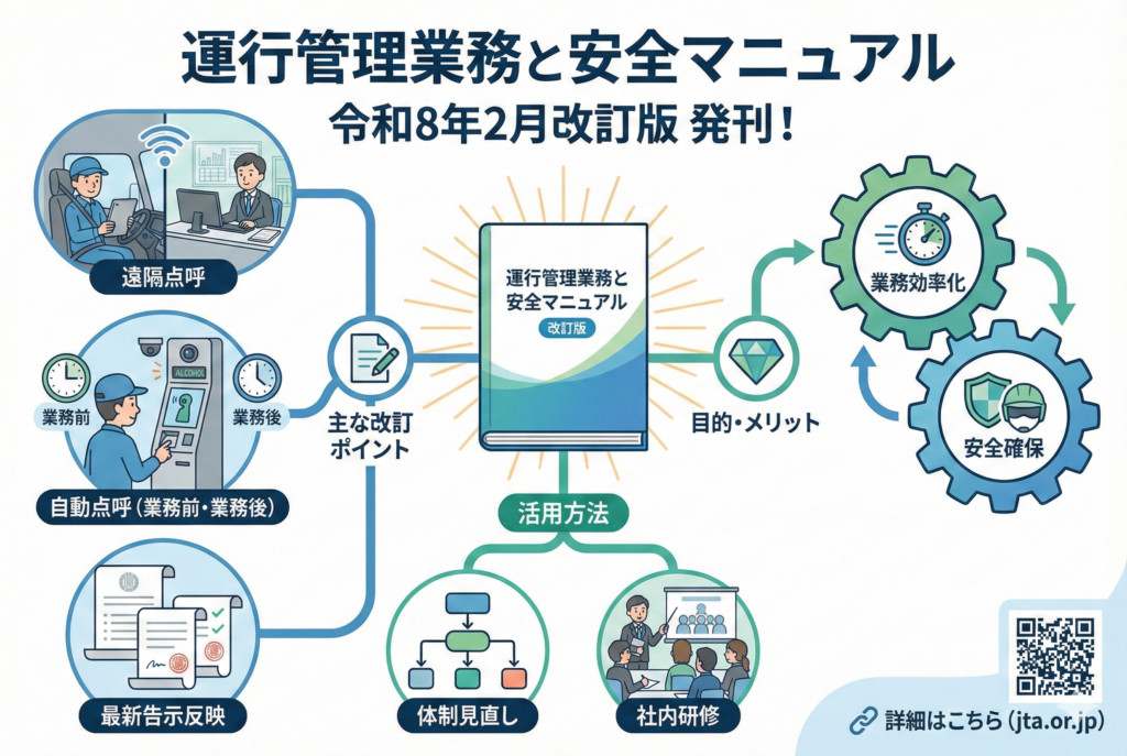 公益社団法人 全日本トラック協会は、「運行管理業務と安全マニュアル」令和8年2月改訂版を発刊し、同協会ホームページにて公開しました。