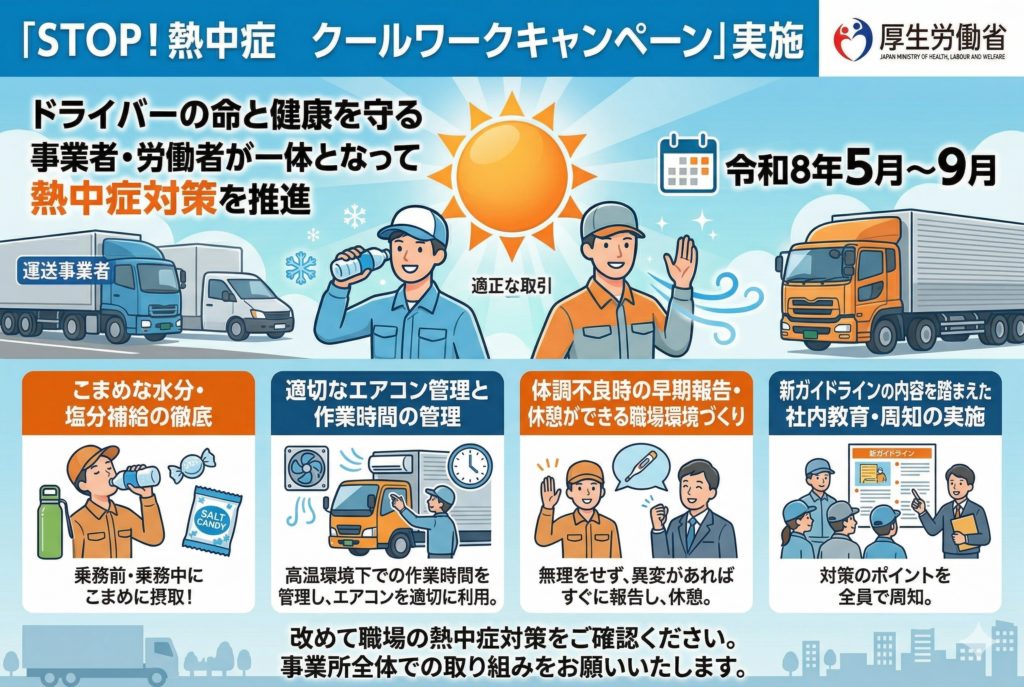 ドライバーの命と健康を守るため、事業者・乗務員が一体となって熱中症対策に取り組みましょう。