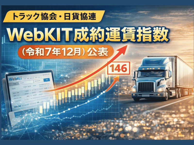 公益社団法人全日本トラック協会および日本貨物運送協同組合連合会より、令和7年12月分のWebKIT成約運賃指数が公表されました。本指数は、全国の協同組合加入事業者が利用する求荷求車情報システム「Web …