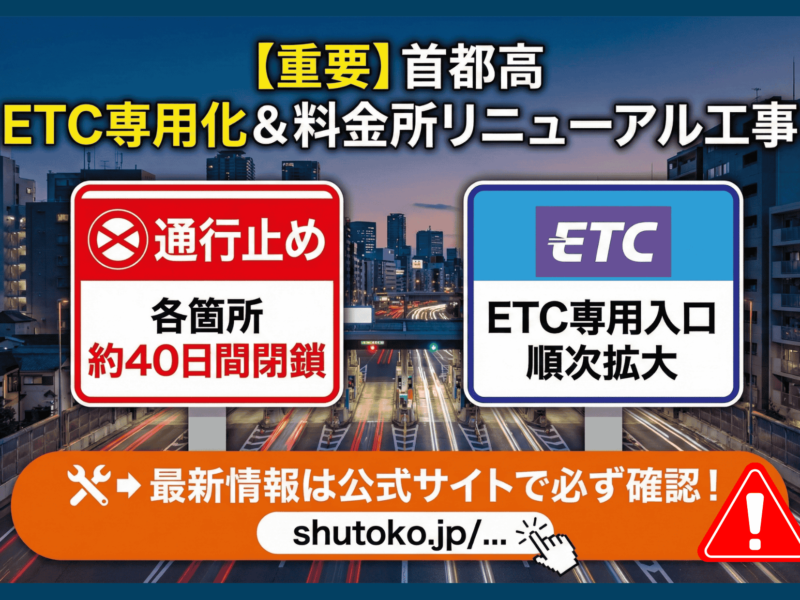 首都高速道路株式会社より、ETC専用入口の拡大および、長期間の通行止めを伴う料金所リニューアル工事に関する情報が公表されています。 日頃より首都高を利用されるドライバーの皆様は、運行計画への影響が予想 …