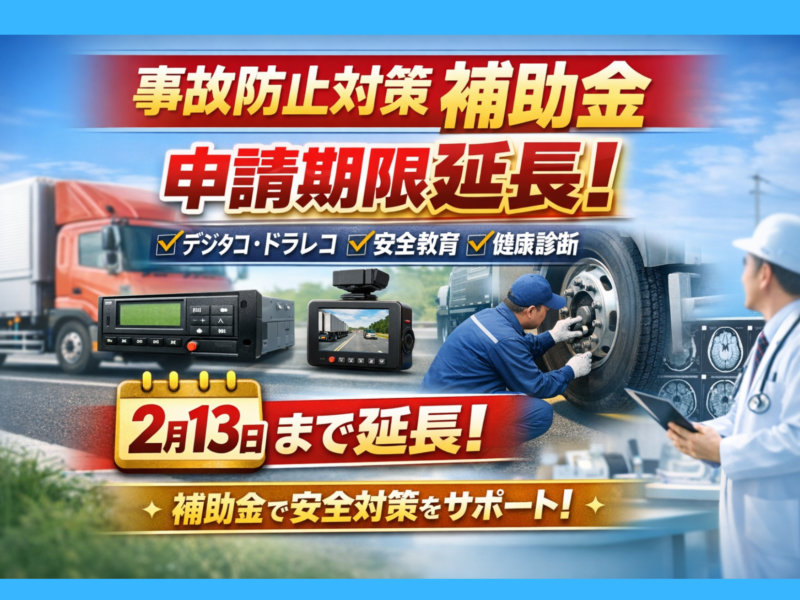 国土交通省は、自動車運送事業における交通事故防止対策の強化を目的とした「事故防止対策支援推進事業」に関する補助金申請受付期間の延長を発表しました。 デジタコ導入、ドライブレコーダー設置、安全教育、健 …