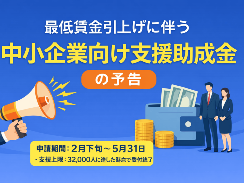 福島県ホームページにおいて、最低賃金の大幅な引き上げにより影響を受ける中小企業・小規模事業者等を支援する助成金事業の予告が掲載されました。 本事業の詳細は、決定次第、福島県ホームページにて順次公表され …