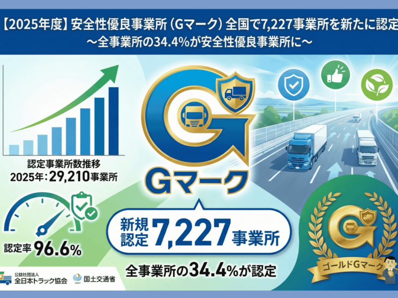 ~全事業所の34.4%が安全性優良事業所に~ 公益社団法人 全日本トラック協会は、2025年度 貨物自動車運送事業安全性評価事業(Gマーク制度) において、新たに7,227事業所を「安全性優良事業所」 …
